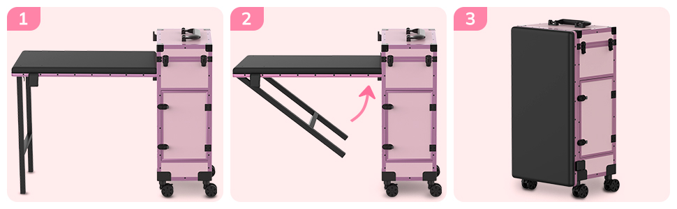 EASYINBEAUTY - Mesa de manicura portátil con 2 cajones, organizador de espejo y esmalte de uñas, estuche de tren de maquillaje con cerradura con computadora de uñas plegable, estuche de viaje