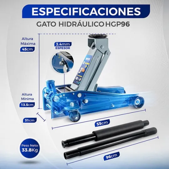 Gato Hidráulico de Patín Hantec 3 Toneladas Automotriz