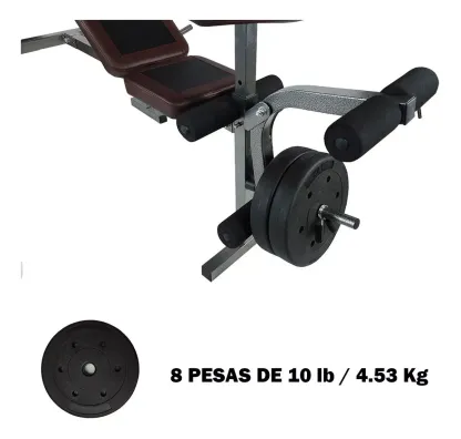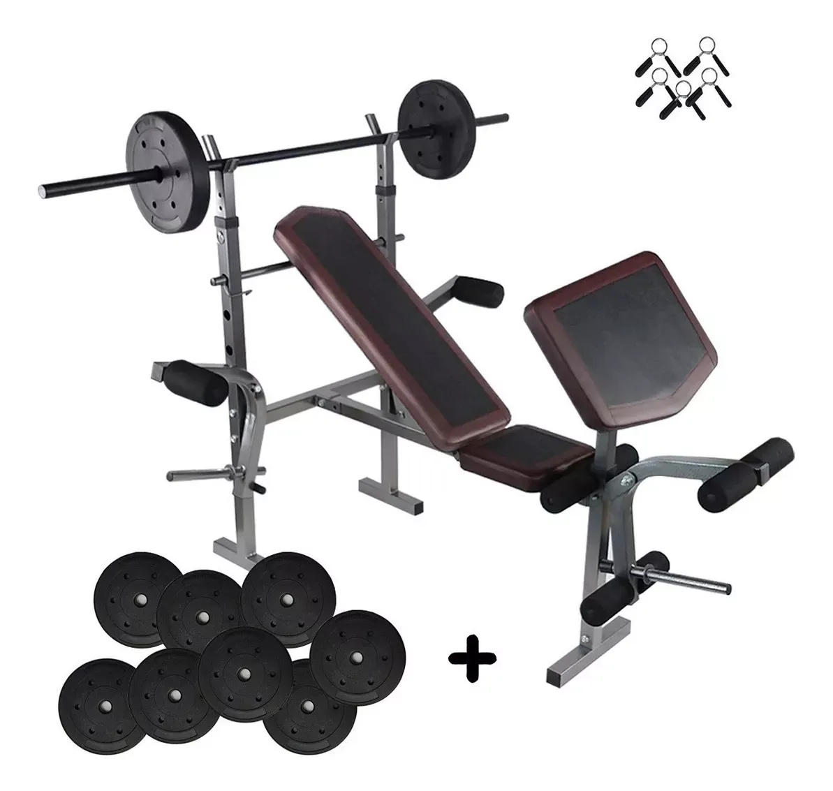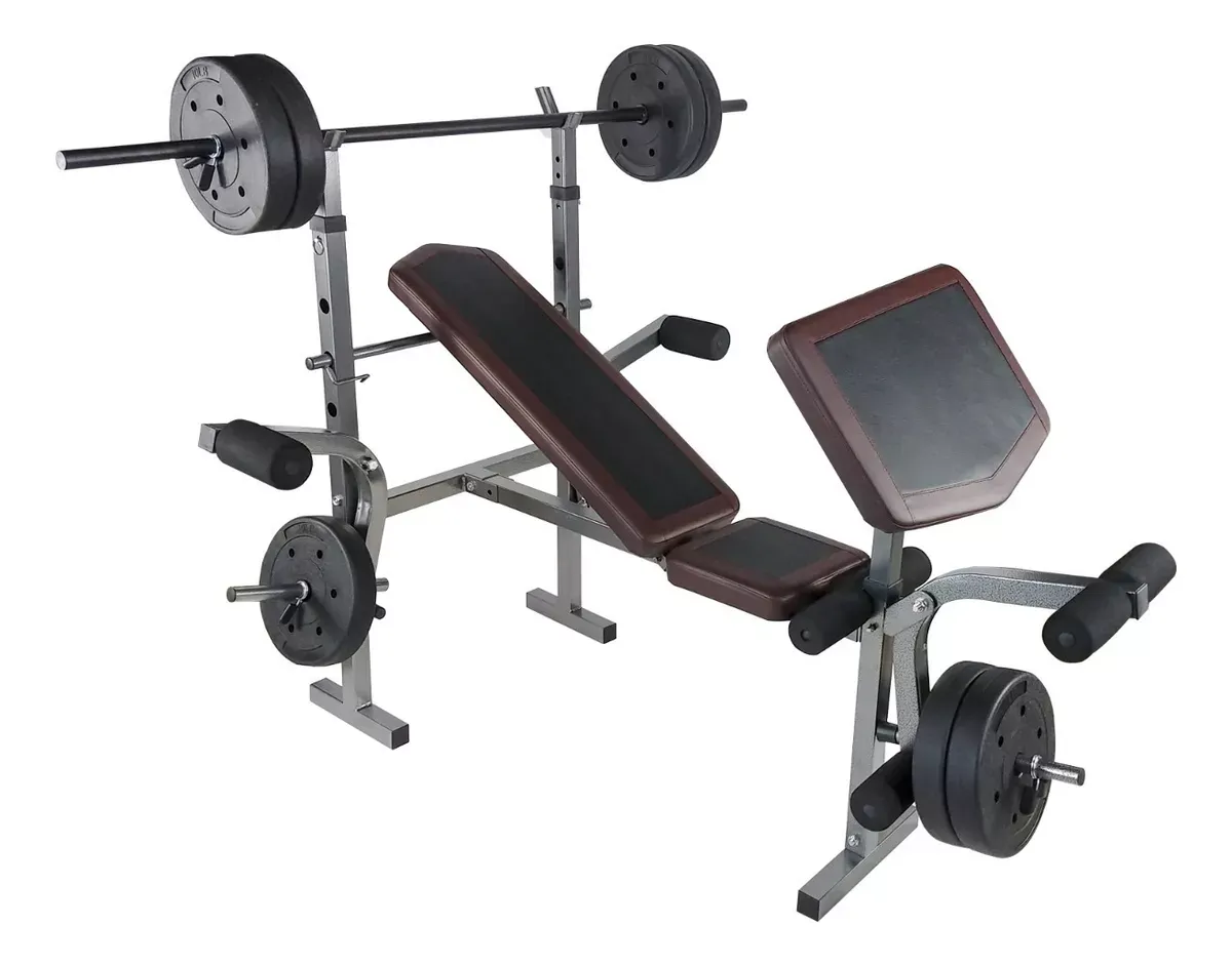 Banco Multiposiciones Kit Discos Gym Pesas Ejercicio Barra