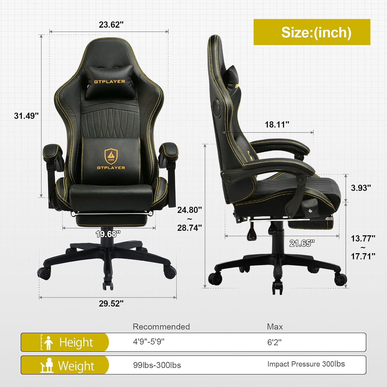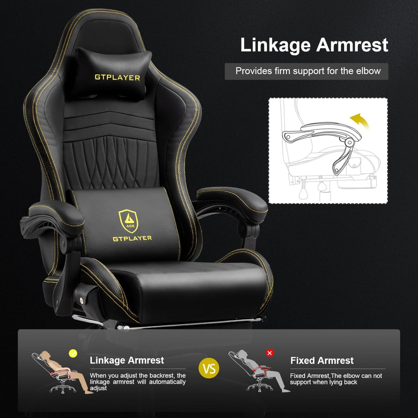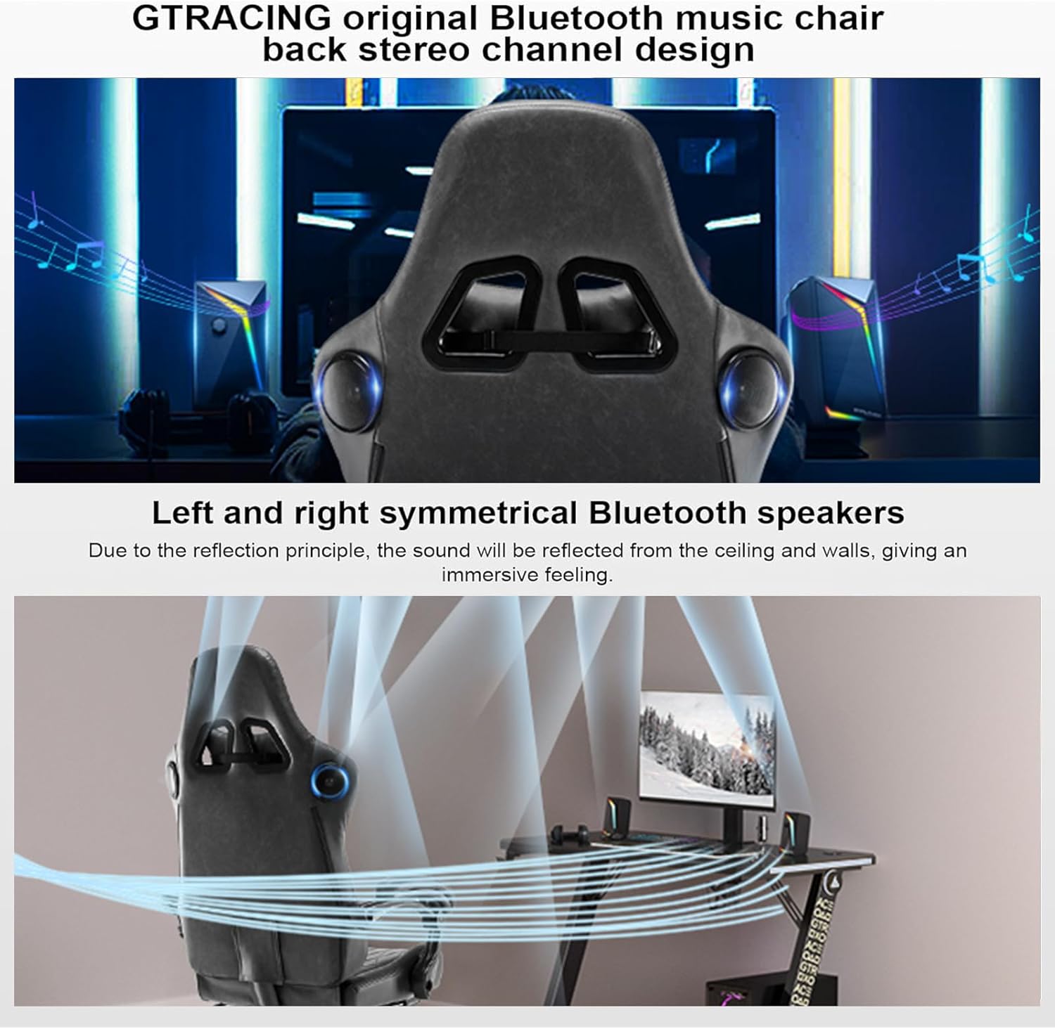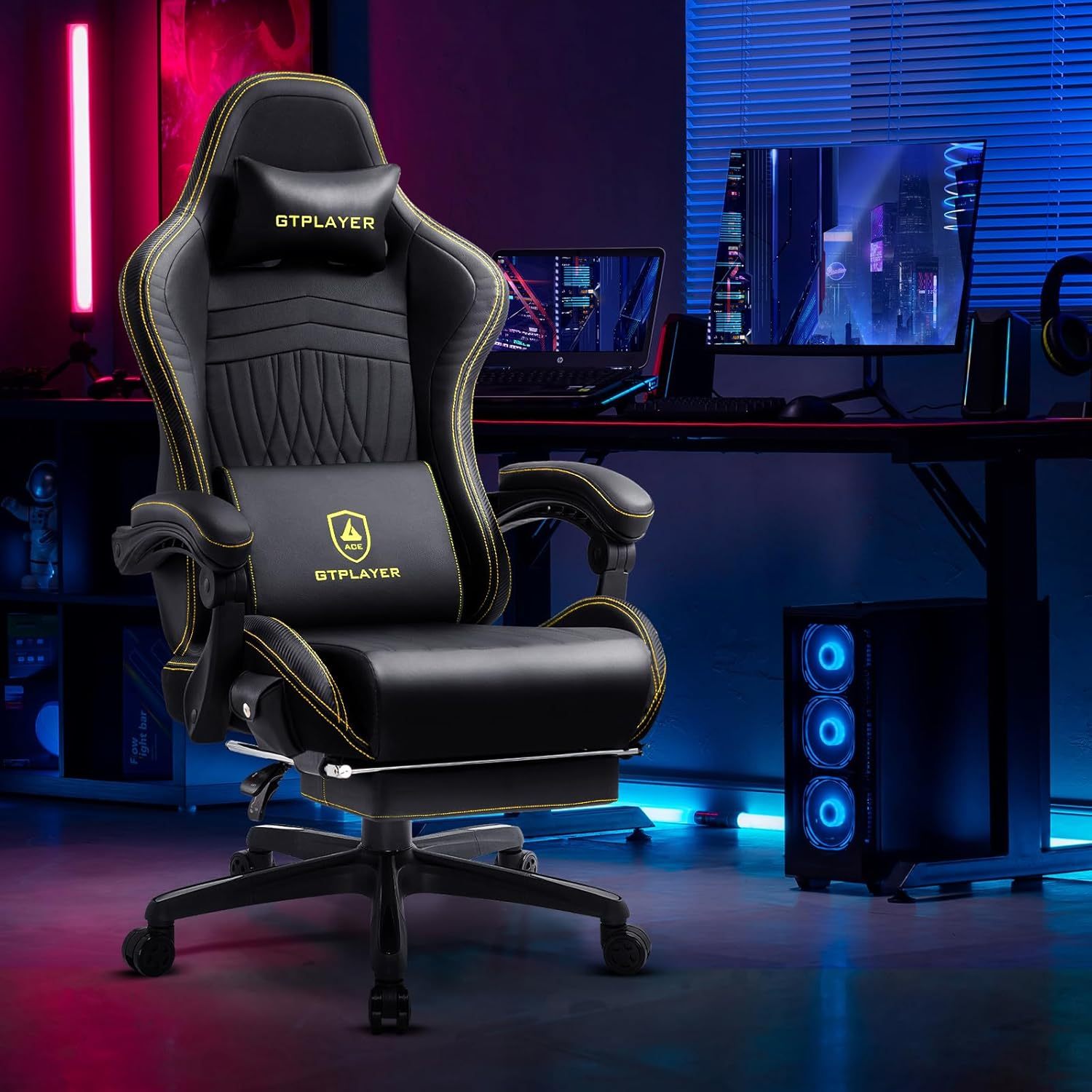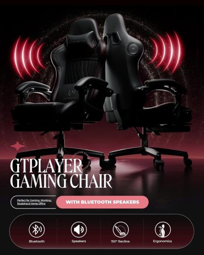 GTPLAYER - Silla para Juegos con Altavoces, sillas de Videojuegos con reposapiés, sillas de PC Gamer para Adultos, Respaldo Alto Acolchado ergonómico reclinable, reposabrazos de Enlace, Ace Pro