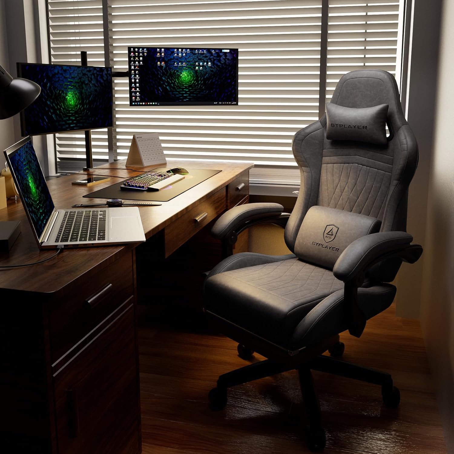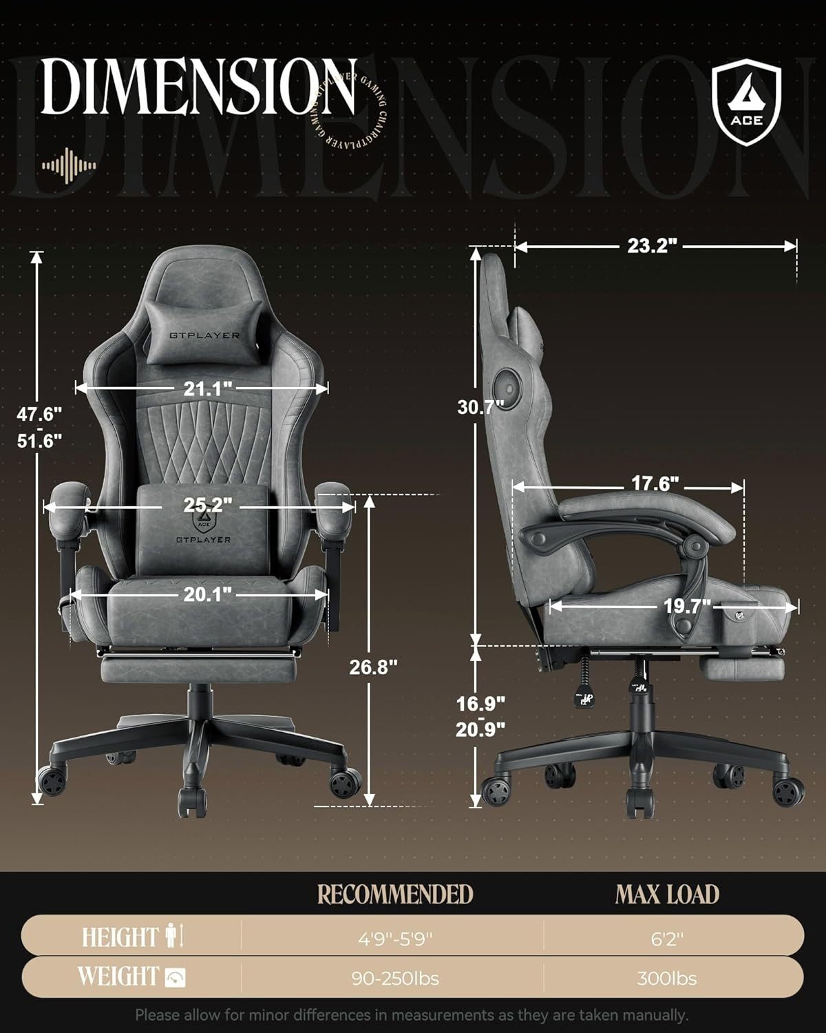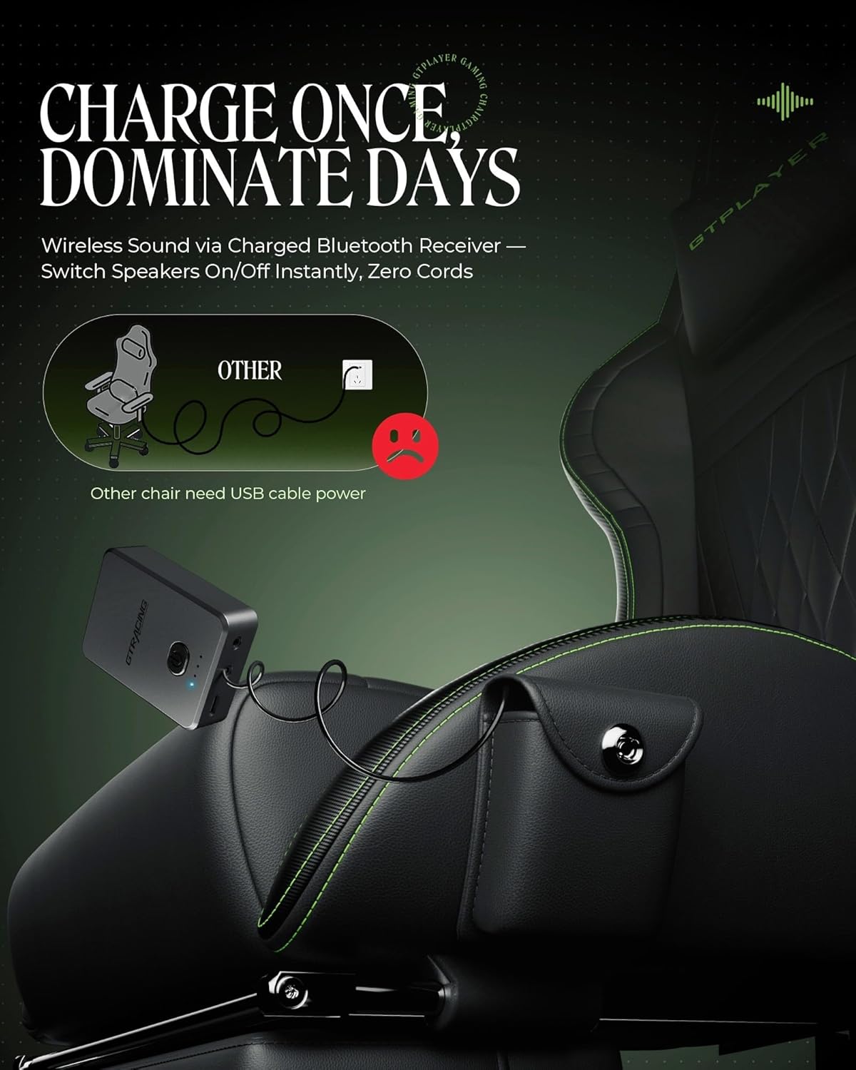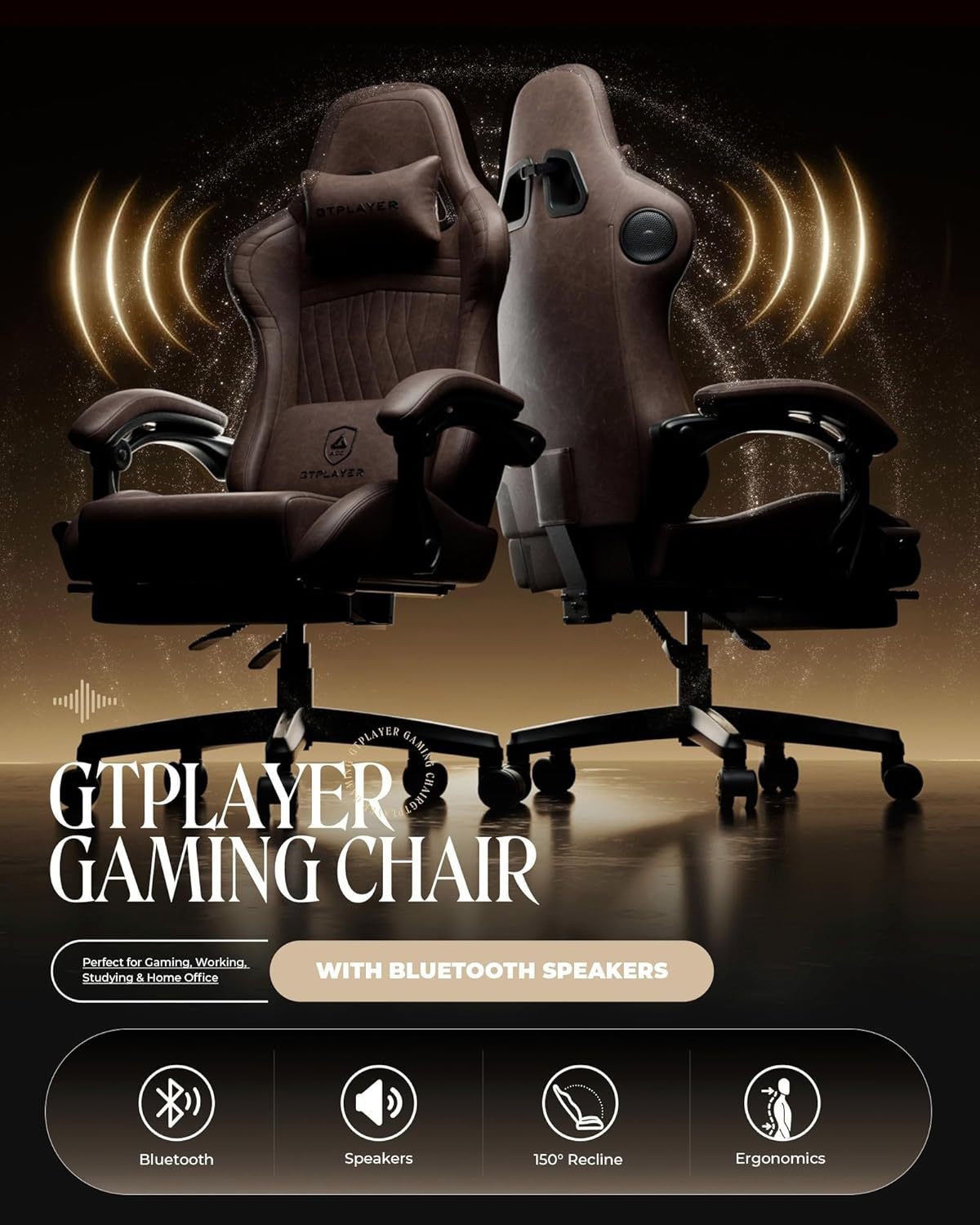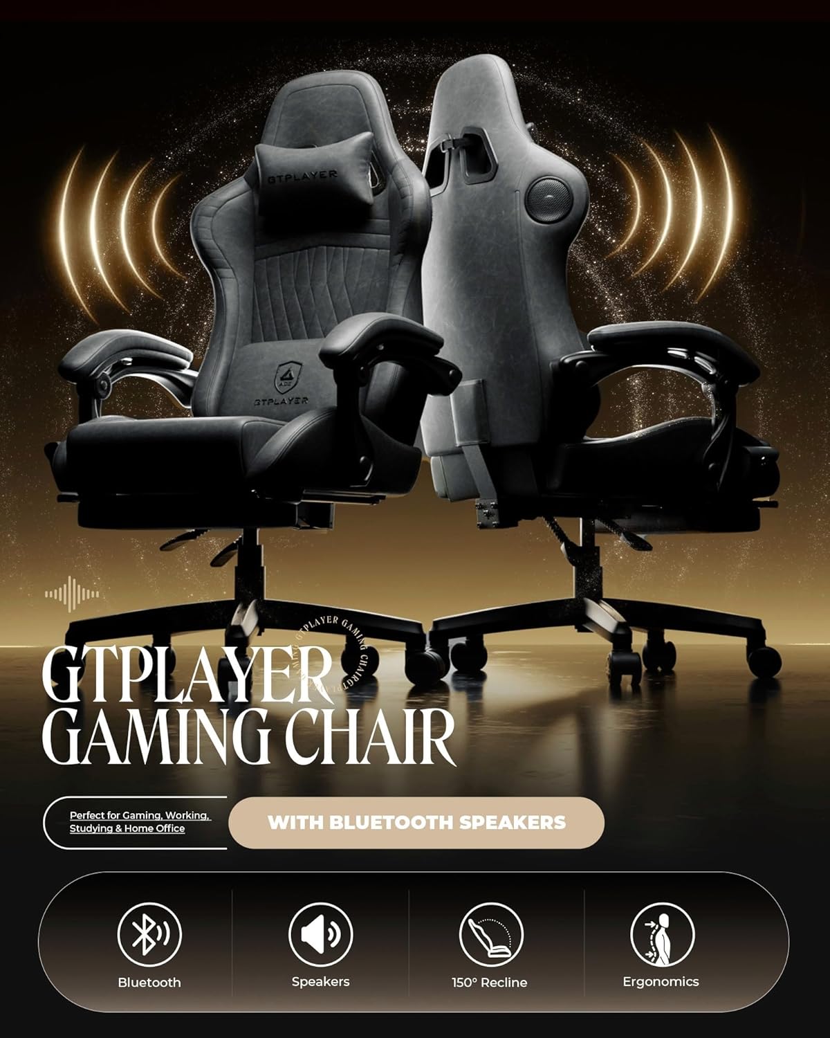 GTPLAYER - Silla para Juegos con Altavoces, sillas de Videojuegos con reposapiés, sillas de PC Gamer para Adultos, Respaldo Alto Acolchado ergonómico reclinable, reposabrazos de Enlace, Ace Pro