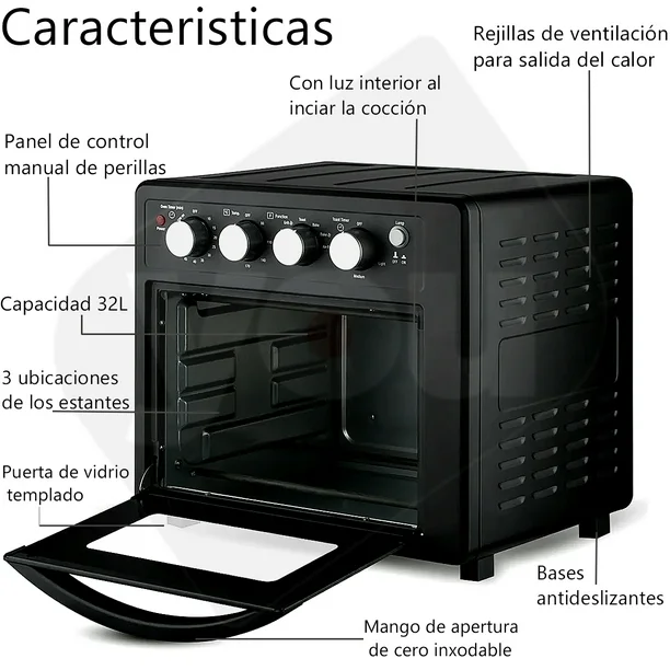 Horno Eléctrico de Convección YOU Freidora De Aire Y Tostador 32 Litros 230°C 1700W