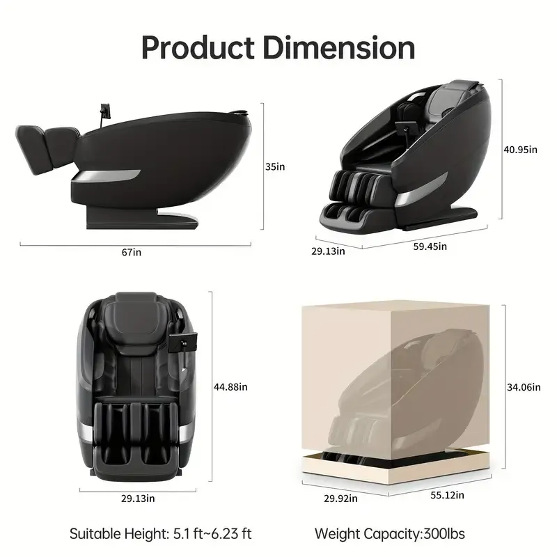 Silla de masaje de cuerpo completo, Sillón de masaje Shiatsu, Pantalla táctil LCD, Calentamiento de espalda baja y pantorrillas, Características personalizables y modos de gravedad cero con montaje completo (Negro)