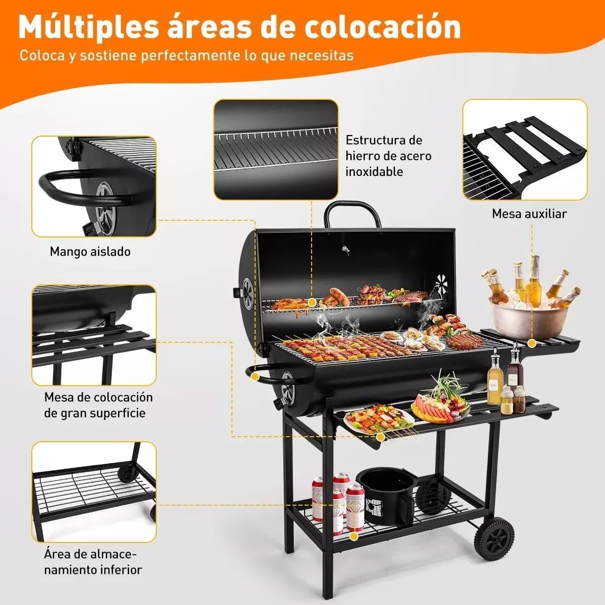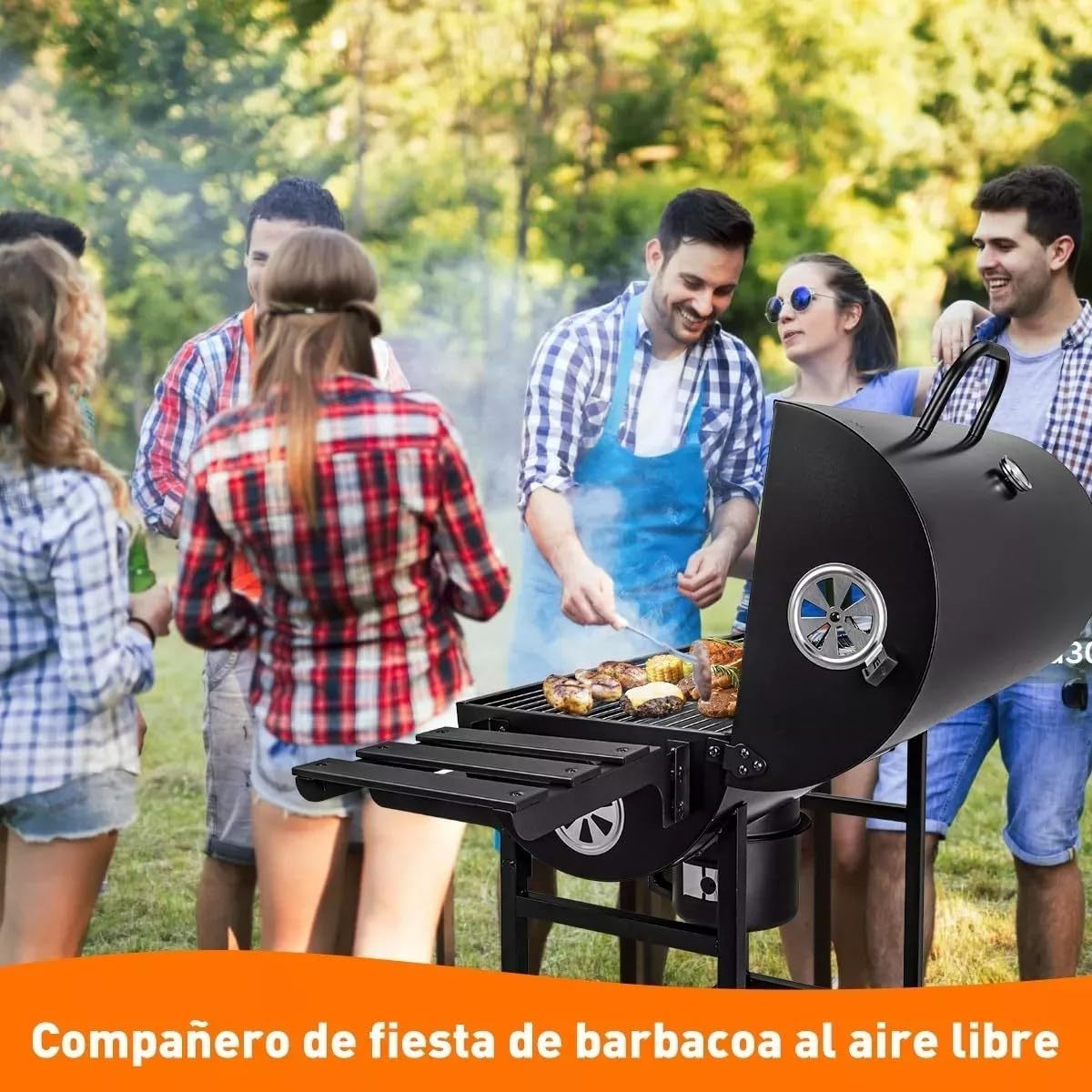 Asador de Carbon con Funda Antipolvo y Cepillo, Parrilla de Carbón con Temperatura Controlada en Forma de Barril, Parrilla de Patio Trasero Fiesta Barbacoa, Camping Grill Doble Capa