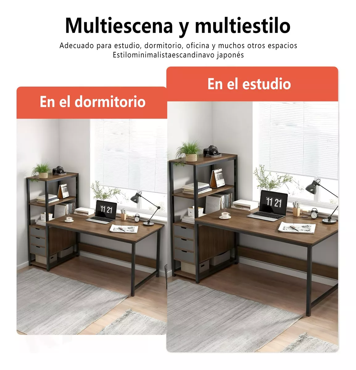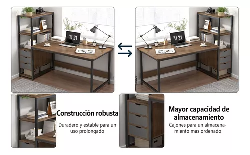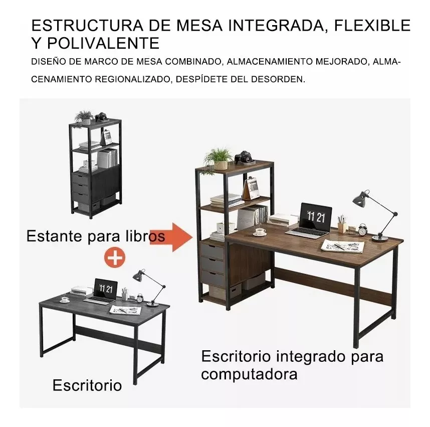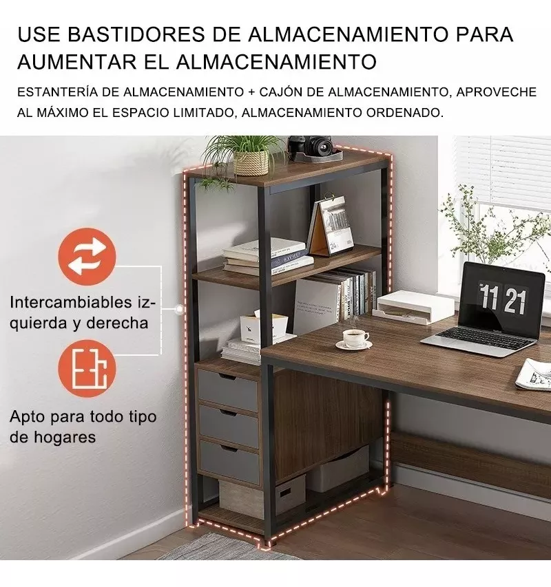 El escritorio de la computadora con estante se puede usar para la oficina en el hogar, la sala de estar, el dormitorio, la sala de estudio, etc. Tiene un diseño razonable y moderno que se puede usar ampliamente para el escritorio de la computadora, la mesa de trabajo, el comedor, la mesa de trabajo, la mesa hecha a mano, la mesa de maquillaje, la mesa de costura, el estante de exhibición, etc.