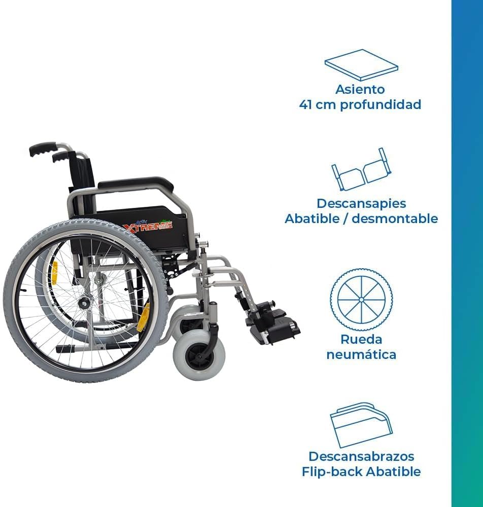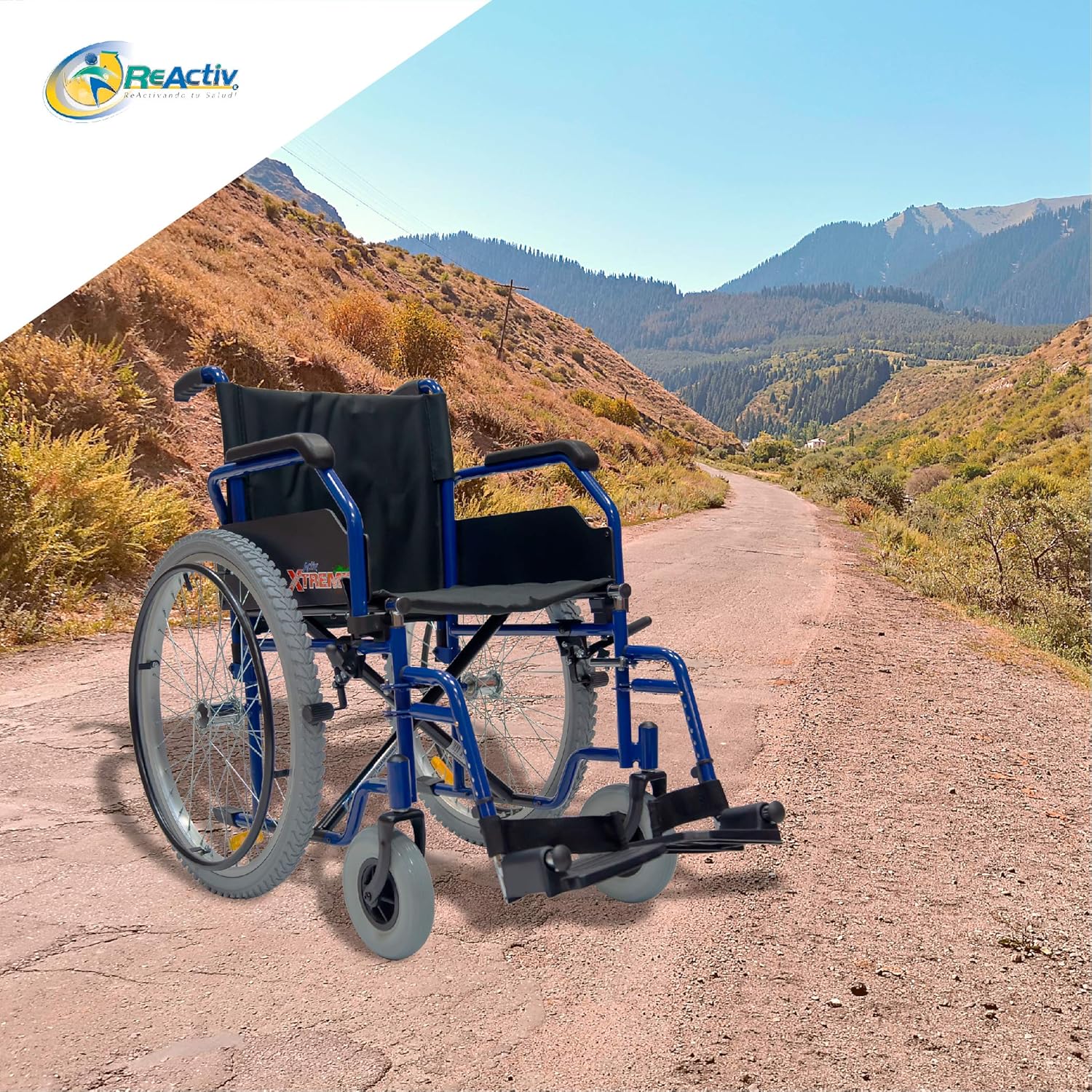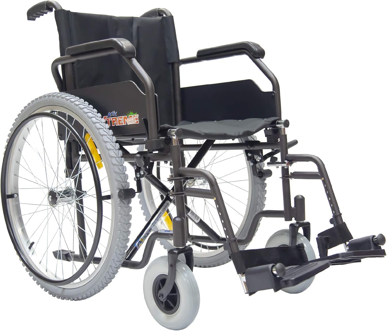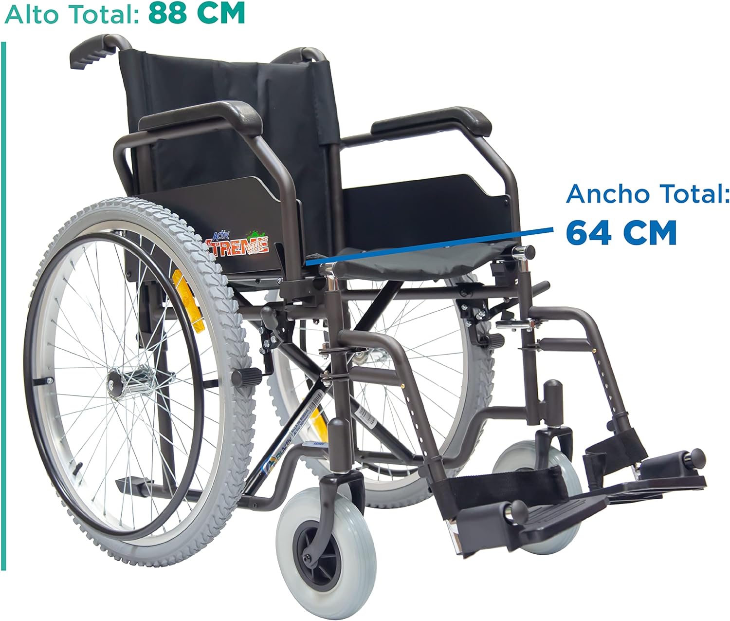 Silla de Ruedas Activ Xtreme ReActiv, Brazos FlipUp y Descansapies Desmontables/Abatibles, R8x2", Rin Aluminio R24x1.75" Neum, T. Nylon, Lodo (Negro)
