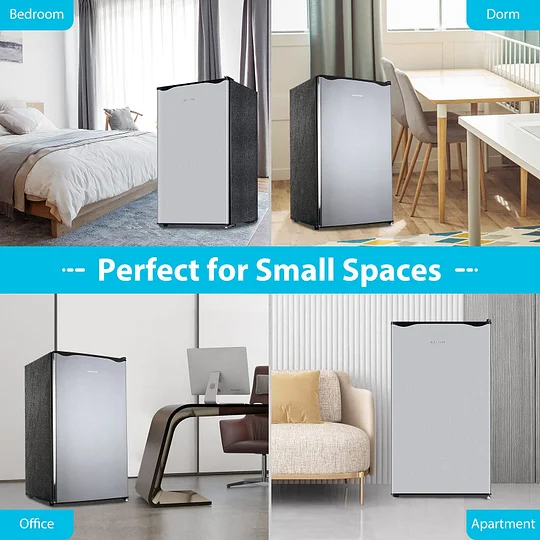 Compact Fridge 3.2 CU.FT. Mini Refrigerator - Small Dorm Fridge with Freezer - 38 dB Low Noise - Adjustable Temperature - Reversible Door - An Idea Gift for Women and Kids, Silver