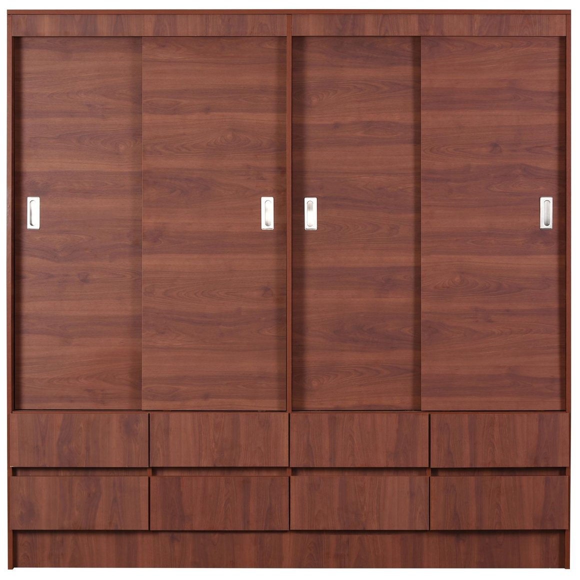 Fabricado con materiales de alta calidad, el clóset en acabado cerezo no solo es robusto y duradero, sino que también aporta una calidez y sofisticación a cualquier ambiente. Las 4 puertas ofrecen acceso a espaciosos compartimentos para colgar ropa y almacenar artículos voluminosos, mientras que los 8 cajones proporcionan un almacenamiento práctico y ordenado para prendas más pequeñas y accesorios. El clóset tiene un estilo deco ejecutivo urbano y está hecho de melamina, lo que lo hace resistente y fácil de limpiar.